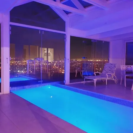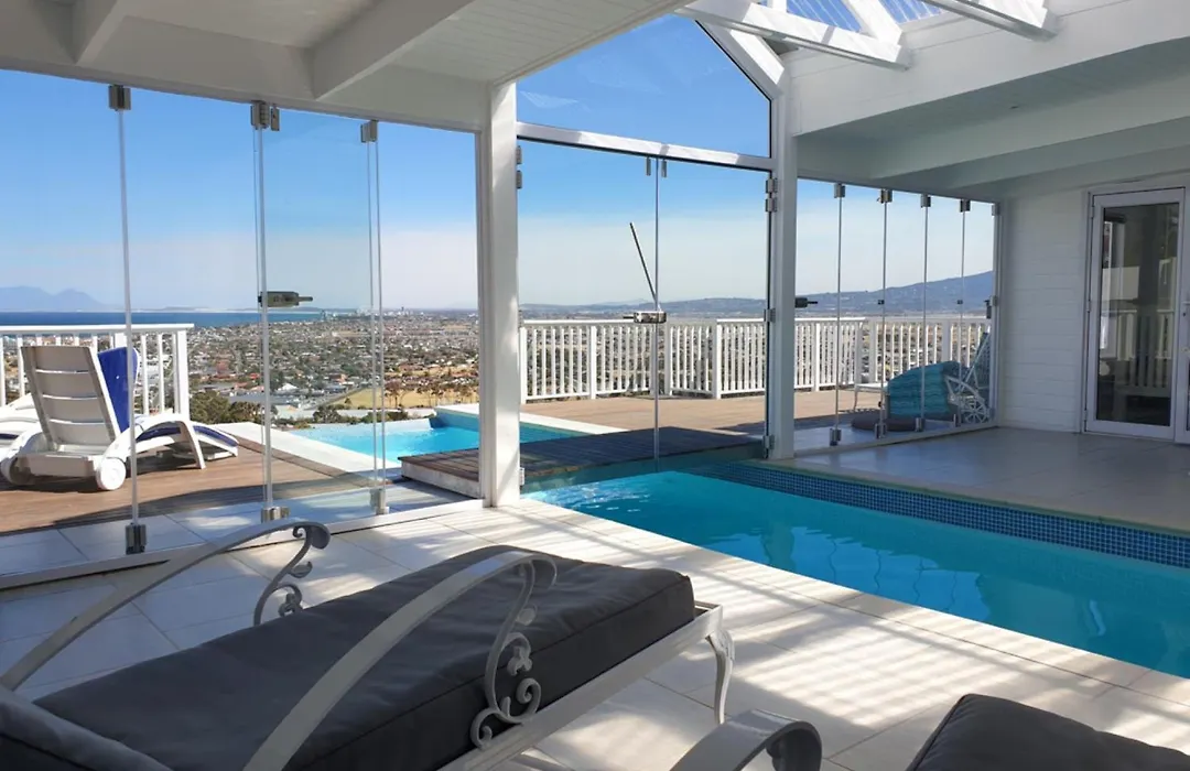 La villa 'The Bolussi Beachhouse', Sleeps 12 In 6 En-Suite Bedrooms With Indoor Pool Gordonʼs Bay, situada a 3 km de la Presa Steenbras, cuenta con una terraza con vistas a las montañas.